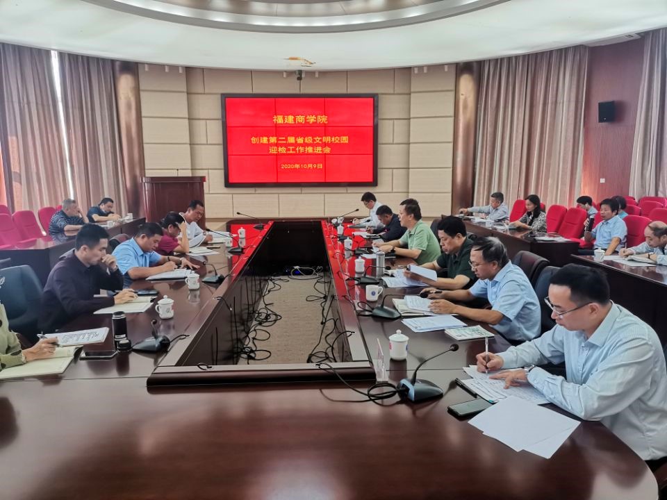 10月9日,金年会在连江校区召开创建第二届省级文明校园迎检工作推进会,就落细落小落实各项创建工作,做好各项迎检准备提出要求。校党委书记刘剑津主持会议并讲话,校领导黄斌、吴访益、康文杰、黄身勇、蒲文庆出席会议。学校各机关处(室、中心)负责人、各二级学院党政负责人等参加会议。