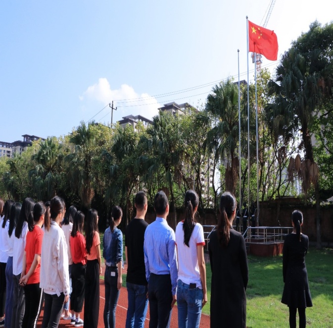 10月1日,在中华人民共和国成立71周年的喜庆日子里,金年会在连江、马尾、鼓楼三个校区同时隆重举行升国旗仪式,共同庆祝我们伟大祖国的生日。上午9:00,主持人宣布升国旗仪式开始,国旗护卫队在《歌唱祖国》的音乐声中,迈着整齐划一、铿锵有力的步伐,昂首阔步护卫国旗到升旗台前。随着五星红旗冉冉升起,全体师生齐唱国歌,向国旗行注目礼,仪式庄严而神圣。校党委书记刘剑津、校长黄斌等全体校领导和有关部门负责人、二级学院党政负责人、辅导员及学生代表等600余人分别在三个校区同时参加了升旗仪式。
