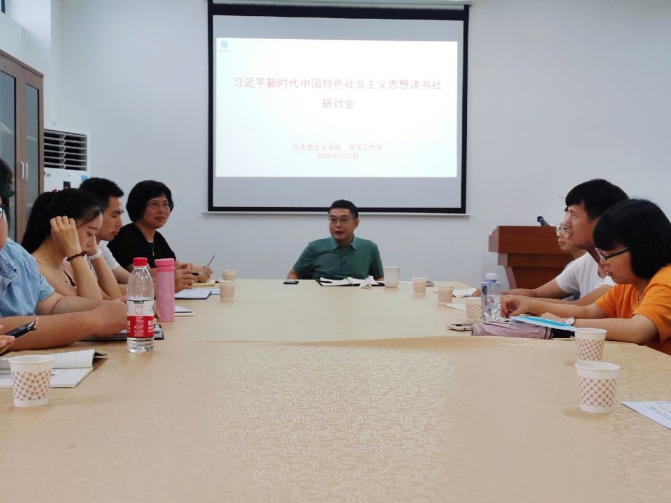 7月2日上午,学校及各学院习近平新时代中国特色社会主义思想读书社研讨会在马克思主义学院会议室召开,校党委副书记吴访益和学生工作处、马克思主义学院及各学院的指导老师参加会议。