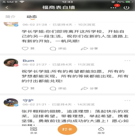 此次活动持续近一个半月时间,活动涵盖心理书信、心理征文、心理情景剧剧本大赛、心理健康主题班会等。在“我想对你说”活动中表达对亲人、老师、朋友、学校的情感,438名同学在表白墙中留下了满满的祝福与心愿;21天习惯打卡活动有958名同学参与,留下16818条打卡记录;心理征文、心理情景剧剧本大赛等均获得了同学们的积极响应。同学们在活动中展示自我,表达情绪、抒发情感,在活动中学习自律与体验自信,在活动中感受爱与被爱。