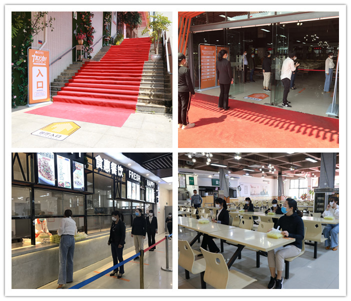 在入校体温检测场景中,为提高突发情况应对能力,学校重点模拟了对体温异常的学生进行隔离和送医、对不配合检查工作的外来人员进行控制与隔离两种突发情况。为做好师生用餐安全工作,又有针对性地对师生进入食堂的体温检测、手部消毒及取餐用餐等环节进行全过程演练。在现场,我们看到师生有序进入食堂、相隔一米排队购买套餐、一人一桌同向用餐。