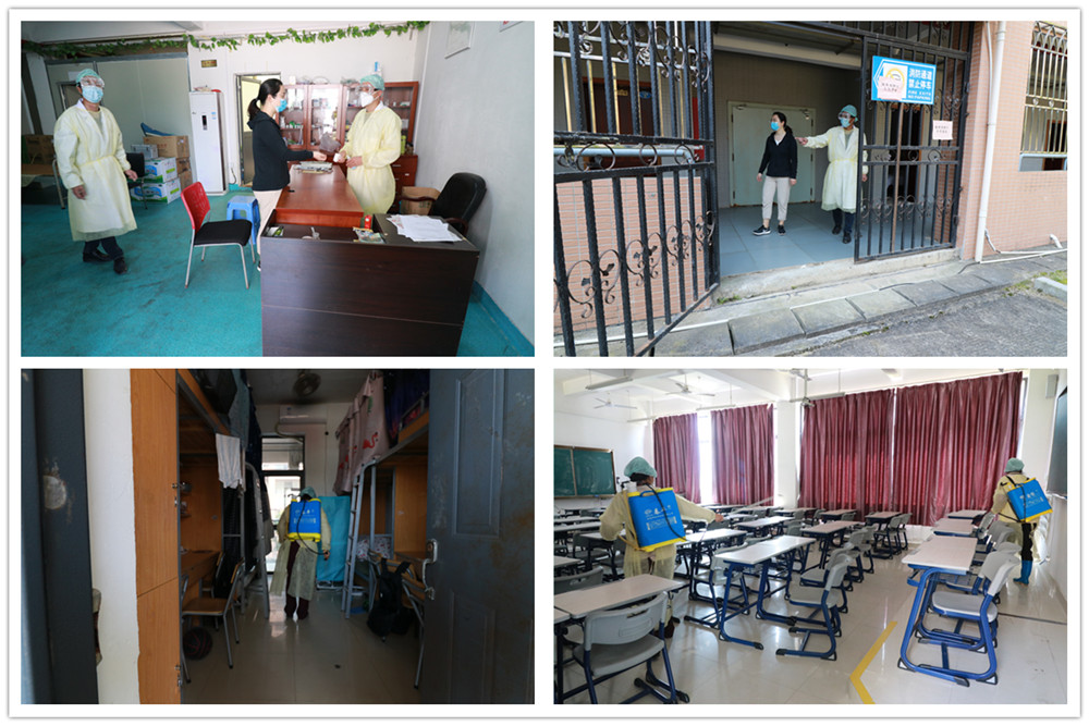 学校还演练了发热学生隔离及宿舍、教室消毒等场景。