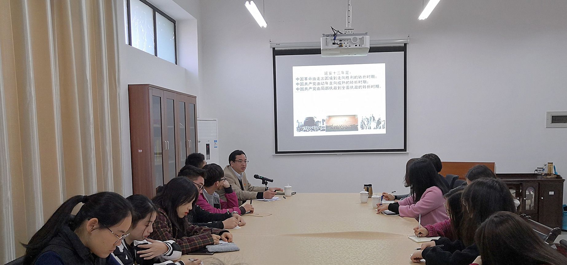 1月2日上午,副校长蒲文庆在马克思主义学院会议室给财务与会计学院习近平新时代中国特色社会主义思想读书社学生上了一堂题为《中国革命成功的延安之路——中共中央延安十三年》的思政课。财务与会计学院、马克思主义学院部分老师以及读书社成员参加了此次学习。
