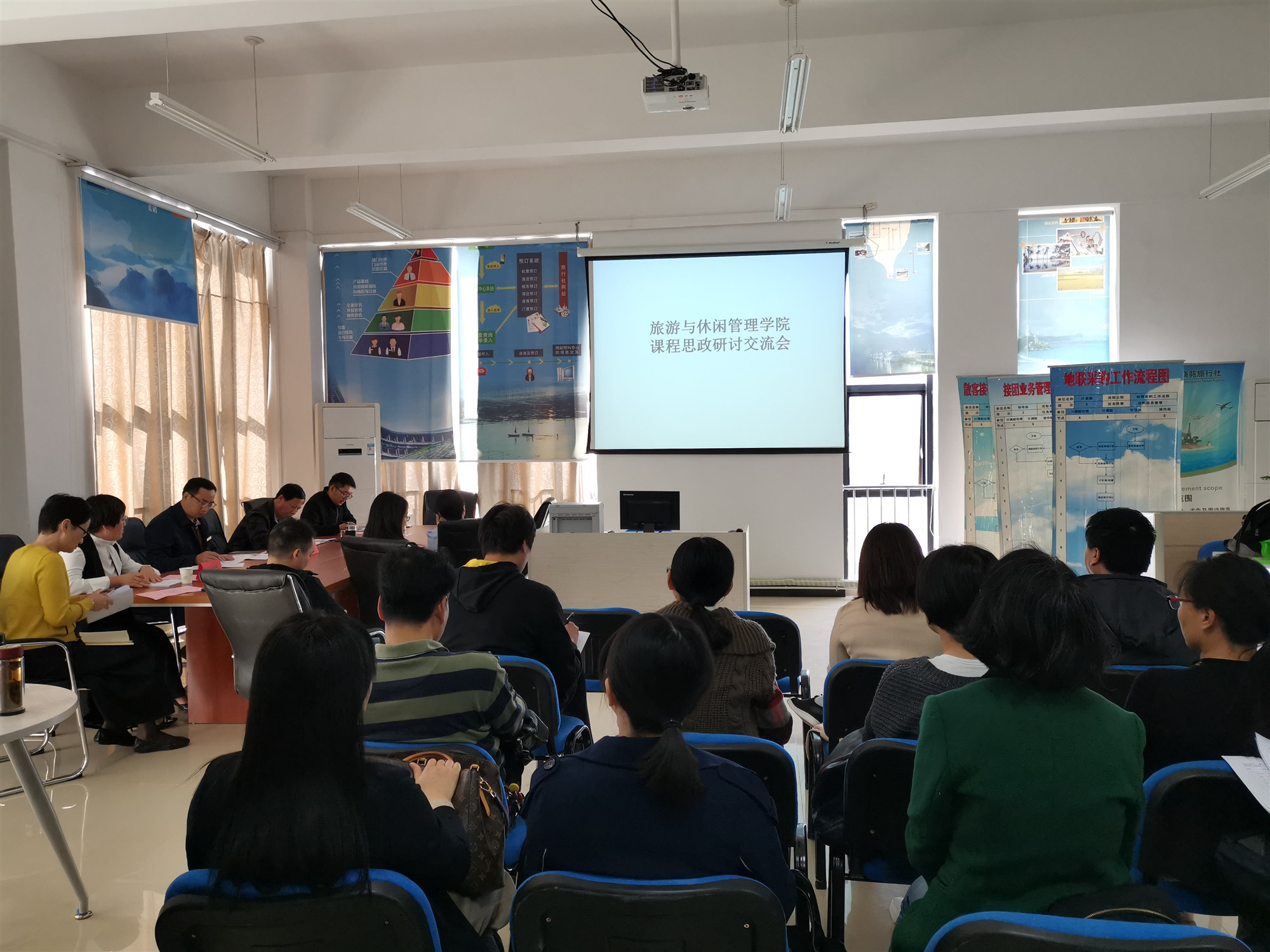 11月19日下午,旅游与休闲管理学院在旅行社实训室召开课程思政研讨会。副校长蒲文庆出席研讨会并讲话。
