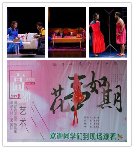 11月12日,2019年高雅艺术进校园——福建人民艺术剧院专场演出在金年会连江校区学生活动中心举行,演出现场座无虚席,近千名师生观看了话剧——《花事如期》演出。