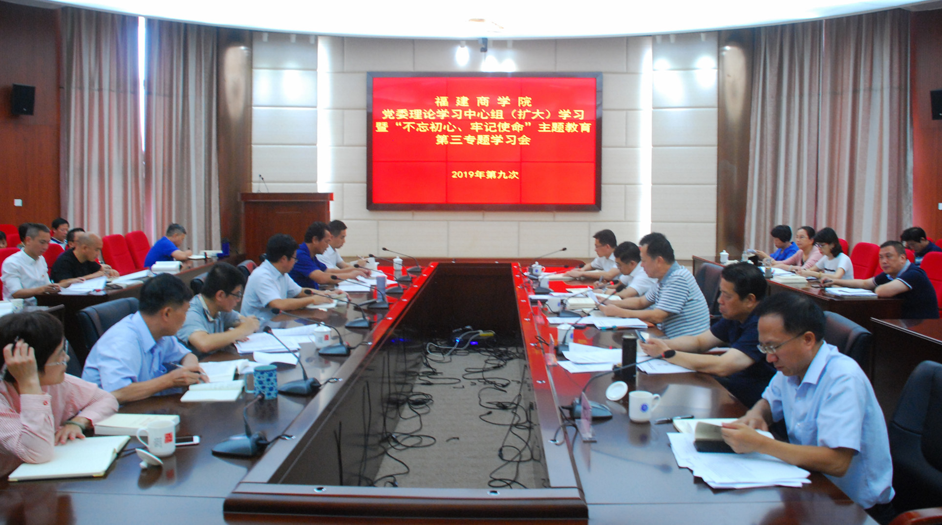 9月27日,金年会在连江校区召开2019年第九次校党委理论学习中心组学习(扩大)暨“不忘初心、牢记使命”主题教育专题学习会,开展主题教育第三专题集中学习研讨。校党委领导班子、部分二级学院负责人和机关党员干部在前期充分自学的基础上,在会上围绕“加强政治建设”这一主题,聚焦学习贯彻习近平总书记关于“不忘初心、牢记使命”的重要论述,进行研讨交流。校“不忘初心、牢记使命”主题教育领导小组组长、校党委书记刘剑津主持会议并发言。校党委副书记吴访益作主题发言,校党委副书记、校长黄斌、副校长康文杰和校纪委书记黄身勇出席会议。