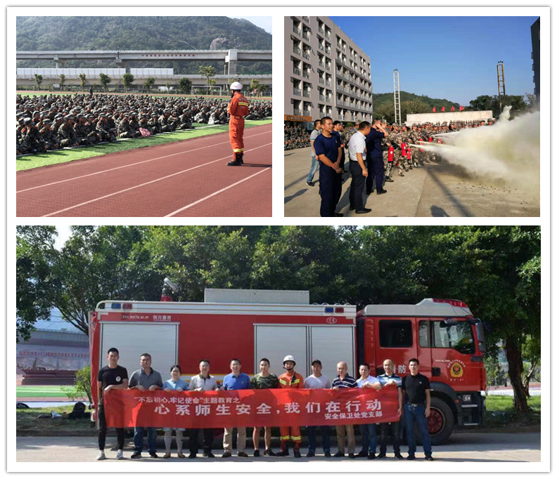 据介绍,本次演练是金年会安全保卫处党支部结合“不忘初心,牢记使命”主题教育开展的以“心系师生安全,我们在行动”为主题的党日活动。演练利用新生军训期间,采取讲、演、练方式,切实有效地提高新生的自身防火意识和逃生自救能力。