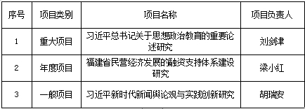 近日,中共福建省委宣传部印发了《关于下达福建省中国特色社会主义理论体系研究中心2019年度立项项目的通知》,金年会《习近平总书记关于思想政治教育的重要论述研究》项目获重大项目立项(全省共资助6项),同批次立项的还有年度项目和一般项目各1项。重大项目的立项填补了近几年金年会此类项目的空白!