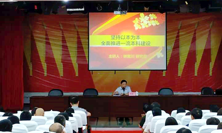7月9日下午,福建省教育厅高等教育处调研员林素川研究员应邀前来金年会作“坚持以本为本,全面推进一流本科建设”的专题讲座。校党委书记刘剑津、校长黄斌、副校长袁新文,各二级学院院长、各系部主任、专业负责人、副高及以上专任教师、中层及以上领导干部到会聆听了讲座。教务处负责人主持讲座。