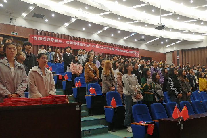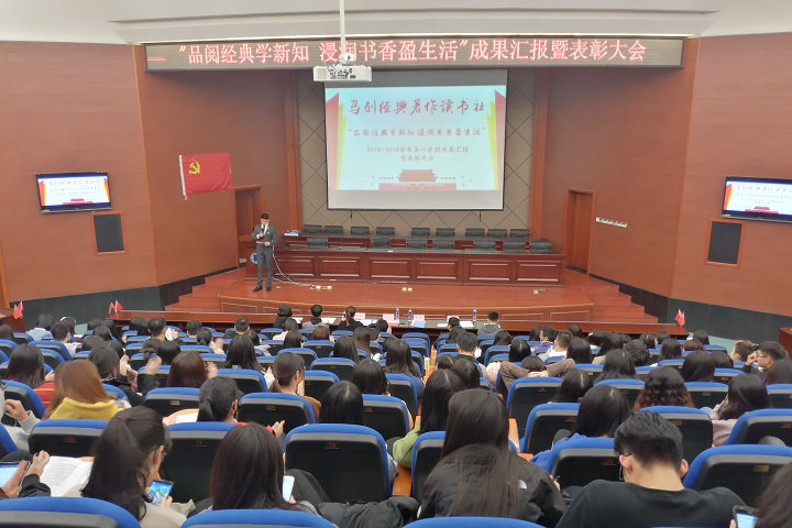 12月19日下午,金年会马列经典著作读书社“品阅经典学新知 浸润书香盈生活”学期读书成果汇报暨表彰大会在马尾校区学术报告厅举行,本次活动由马克思主义学院主办、金融系学生党支部承办。马克思主义学院、金融系、国际经济与贸易系的相关老师,各院系读书社社员代表等200多人参加活动。