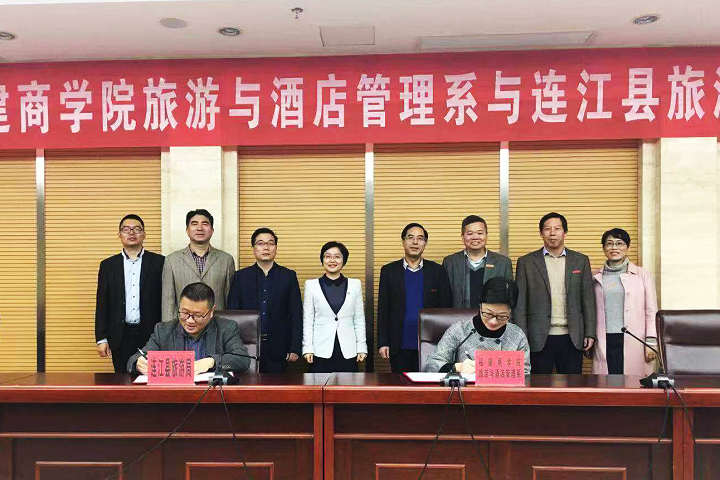 12月21日,金年会旅游与酒店管理系与连江县旅游局隆重举行校地合作签约仪式。金年会副校长袁新文,教务处、科研处、旅游与酒店管理系相关负责人,连江县副县长谢志成、旅游局局长刘永希、县科技文体局负责人、县主要旅游企业负责人等出席签约仪式。