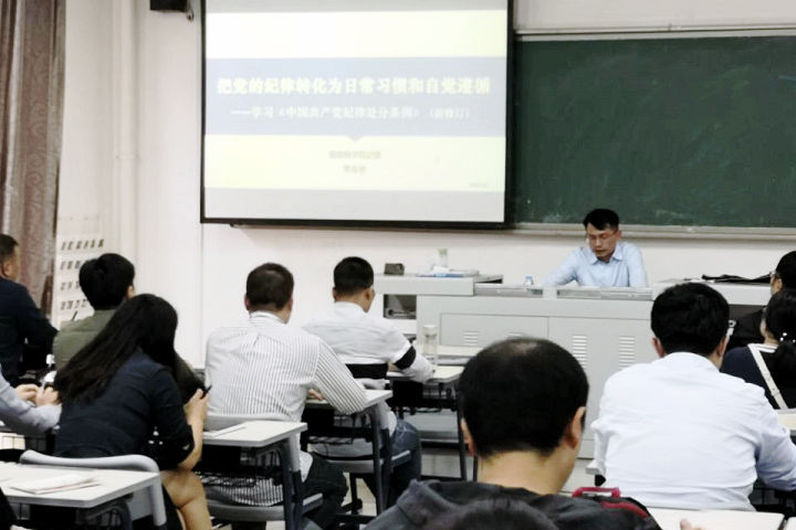 12月4日下午,校纪委书记黄身勇以《把党的纪律转化为日常习惯和自觉遵循》为题,到基层总支宣讲新修订的《中国共产党纪律处分条例》。管理工程系、信息工程系的全体党员参加了活动。