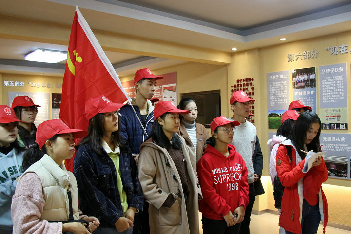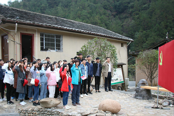 在考察学习过程中,党员师生们重温入党誓词。一行人还开展了实践学习现场交流座谈。在座谈中,刘剑津书记对同学们提出了四点要求:一要多投身实践。“纸上得来终觉浅,事非经过不知难”,实践出真知,青年大学生要走出校园,多接触社会,多开展实践考察,及时更新知识,丰富经验,做到“知行合一”。二要多坚持锻炼。青年大学生要按教育部提出的“走下网络、走出宿舍、走向操场”要求,充分认识到强健身体和充实大脑一样重要,在学习之余,更多地走地向运动场,坚持体育锻炼,做德智体美劳全面发展的社会主义建设者和接班人。三要坚持人民立场。习近平总书记“三进下党”体现了中国共产党始终以人民为中心,青年大学生要自觉树立和坚持以人民为中心的理念,“先天下之忧而忧,后天下之乐而乐”,勤奋学习,掌握过硬本领,服务社会,服务人民。四要有家国情怀。青年大学生要做到“风声雨声读书声,声声入耳;家事国事天下事,事事关心”,自觉把个人融入时代,把人生坐标和奋斗理想定位在建设美丽家乡和美丽中国上,胸怀家国天下,为之奋斗不息。