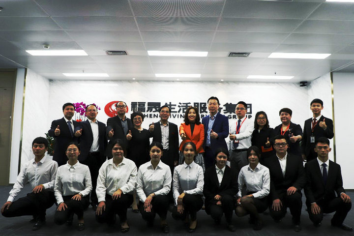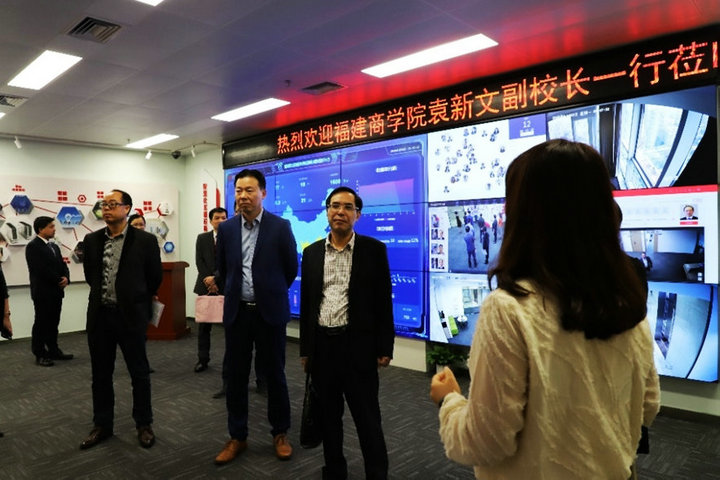 在签约前,袁新文副校长一行参观了福晟生活服务集团总部,体验了在公司自主研发超脑系统支撑下的无感化安防系统。