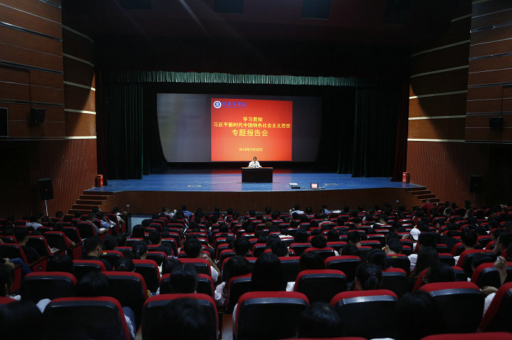 9月29日下午,金年会在连江校区举行学习贯彻习近平新时代中国特色社会主义思想专题报告会。校党委书记刘剑津以“在新时期的历史方位下做好人生规划”为题进行主题宣讲。校领导班子成员、各部门负责人、院系负责同志、教师代表、辅导员代表、学生代表等400余人聆听了宣讲。