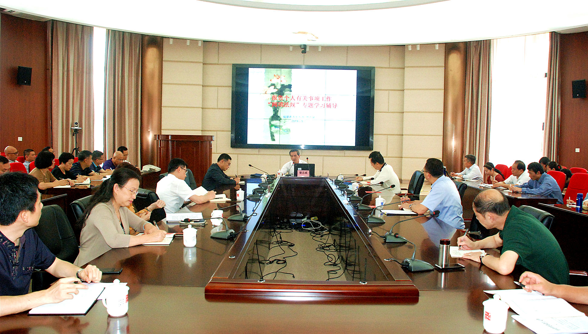 5月14日,校党委举行党委理论学习中心组学习(扩大)会,邀请省委副厅级巡视专员、省委组织部干部监督室曾志斌主任作题为《报告个人有关事项工作“两项法规”专题辅导》讲座。校党委书记刘剑津主持会议并讲话,在家校领导,中层和学校副处级及以上领导干部参加会议。
