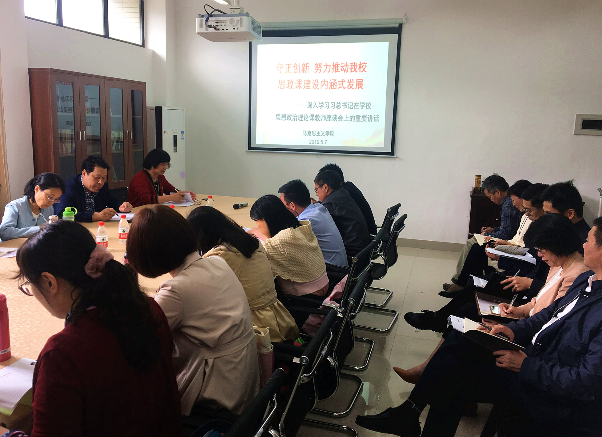 会上,马克思主义学院负责人介绍了学院关于学习贯彻习近平总书记在学校思想政治理论课教师座谈会上重要讲话精神的情况,并就如何深入学习贯彻提出了工作思路,从打造思政课课改平台、教学资源建设、教学手段创新、科研能力提升、经典著作选读等方面做了具体汇报。
