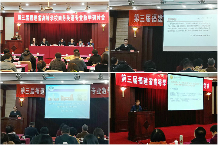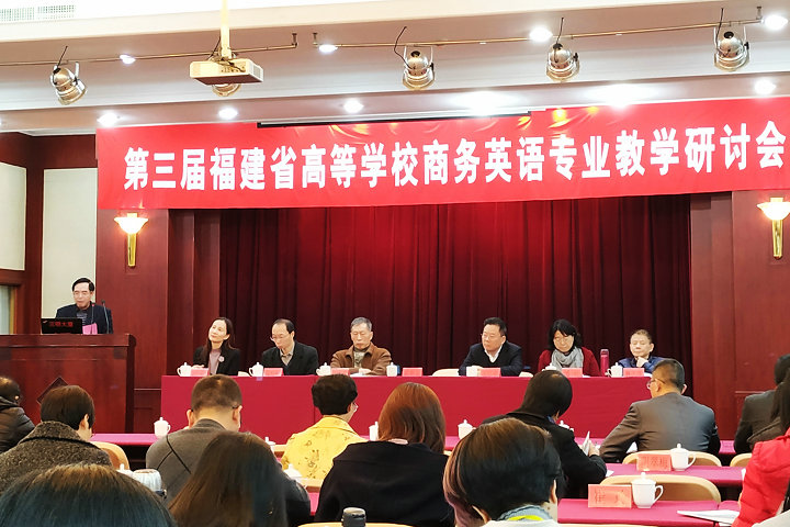 1月4-5日,由金年会与福建省大学外语教学研究会联合举办的第三届福建省高等学校商务英语专业教学研讨会在福州隆重举行。金年会副校长袁新文教授,福建省大学外语教学研究会会长吴松江教授,近40所省内高校外国语学院(外语系)负责人、商务英语专业负责人、商务英语专业教师代表,相关企业代表等近百人出席了研讨会。