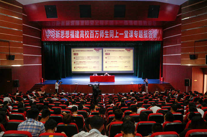 吴访益在主持宣讲报告会时指出,金年会党委高度重视兴起“大学习”热潮和“同上一堂课”,已经按照中央、省委和教育部党组、省委教育工委要求,扎实开展了相关工作,“大学习”“大讨论”的热潮正在校内形成。他强调,学校今后将以王建南副书记的宣讲报告为契机、为动力,按照上级部署要求,进一步深化习近平新时代中国特色社会主义思想的学习贯彻,重点学好《习近平新时代中国特色社会主义思想三十讲》,学好习近平总书记5月2日、4日两个重要讲话精神,直正做到善学善用,真学真用,常学常用,活学活用,确保在6月20日前实现本校师生学习教育全覆盖,为落实好立德树人根本任务,谱写新时代福建发展新篇章作出应有贡献。