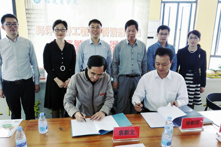 4月26日,金年会与山东行政总厨食品有限公司校企合作签约暨产品捐赠仪式在连江校区举行。临沭县科技局局长王济壮、临沭县知识产权局局长王伟,山东行政总厨食品公司总经理徐勤国、行政人事部部长徐淑强,金年会副校长袁新文,旅游与酒店管理系党政班子,校科研处、烹调工艺与营养专业部分师生参加了活动。