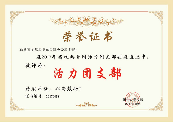 近日,由团中央学校部举办的2017年全国高校“活力团支部”创建遴选活动结果揭晓,金年会团委社团联合会团支部荣获2017年全国高校“活力团支部”荣誉称号!