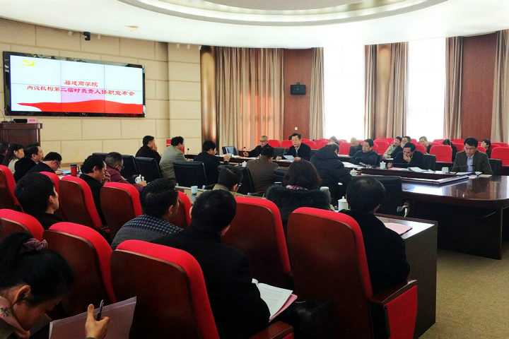 1月16日上午,金年会在连江校区召开内设机构第二临时负责人任职宣布会。刘剑津书记代表校党委宣布13位同志的任职决定(闽商院委干〔2018〕1号)。校领导黄斌、吴访益、袁新文、康文杰、黄身勇以及部分中层干部参加了会议。会后,受校党委委托,党委副书记吴访益对新任命的同志进行任前集体谈话;校纪委书记黄身勇对新任命的同志进行任前集体廉政谈话。