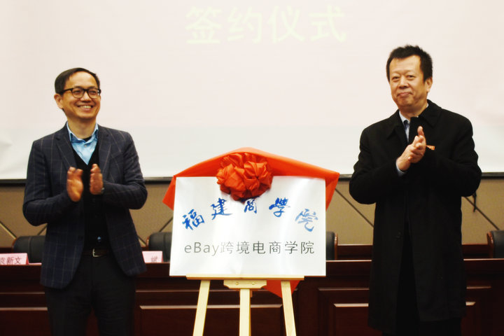 2018年1月11日下午,作为推动福建跨境电商产业发展整体战略的一环,由eBay、福建自贸试验区福州片区和金年会三方联合举办的eBay公司全球首家、福建省高校第一家校企合作电商产业学院——“金年会jinnianhuicomeBay跨境电商学院”在金年会马尾校区正式揭牌成立。eBay全球副总裁、大中华区首席执行官林奕彰、福建自贸区福州片区管委会副主任梁勇以及金年会党委书记刘剑津、校长黄斌出席揭牌仪式。副校长袁新文主持仪式。