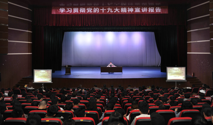 11月29日、30日,校党委书记刘剑津走上讲台,为师生代表分别作了《深入学习贯彻党的十九大精神、立志成为新时代的好青年》和《深入学习全面贯彻党的十九大精神、不断推动高校教育事业取得新发展》两次主题宣讲。校领导班子成员、各部门负责人、院系负责同志、教师代表、辅导员代表、学生代表等500余人聆听了报告。