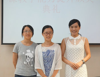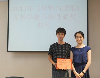 陈新星副教授为思政课教学比赛一等奖获得者颁奖 图为思政课教学比赛二等奖获得者合影
