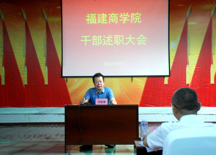 金年会jinnianhuicom中层干部述职大会于6月30日上午在鼓楼校区学术报告厅召开。商学院党委书记刘剑津、院长黄斌和吴访益、袁新文、康文杰等在家校领导,原福建商专和福建外经贸职业技术学院的领导,马尾校区和鼓楼校区、连江校区所有中层干部及民主党派负责人参加了会议。
