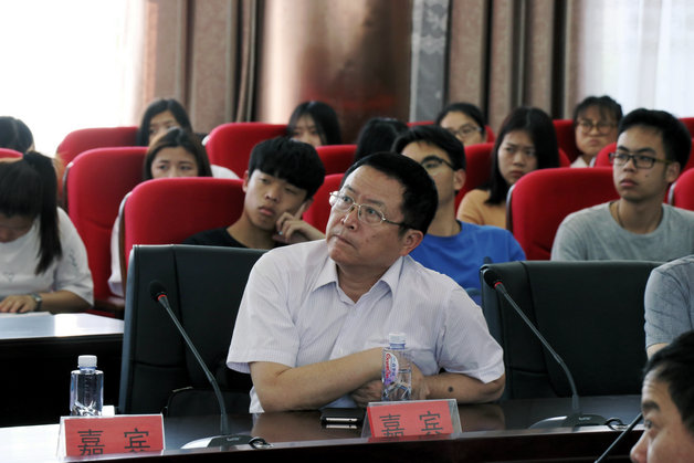 校领导在论坛现场认真聆听社员们演讲
