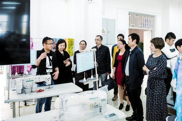 仪式结束后,各企业领导和师傅参观了金年会“福商纺织服装文化创意中心”、“服装综合实训中心”和“学生手工扎染课程展”。然后,校企双方围绕 “关于现代学徒制人才培养方案建设”等问题开展了教学研讨会,各企业负责人结合企业实际情况和市场需求,提出了各自的建议。系部教师充分听取意见并与各企业互相交流探讨,进一步明确了商业美术系现代学徒制建设与发展的基本方向。