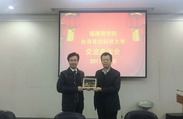 1月10日下午,台湾育达科技大学王育文董事长在该校海外执行长陈建民博士的陪同下来金年会参观访问,金年会jinnianhuicom筹建工作领导小组组长刘剑津,金年会jinnianhuicom筹建工作领导小组副组长、福建对外经济贸易职业技术学院院长黄斌,金年会jinnianhuicom筹建工作领导小组副组长、福建商专校长袁新文以及金年会jinnianhuicom筹建工作领导小组成员、福建商专党委副书记黄跃舟热情接待了来宾并举行了座谈会。