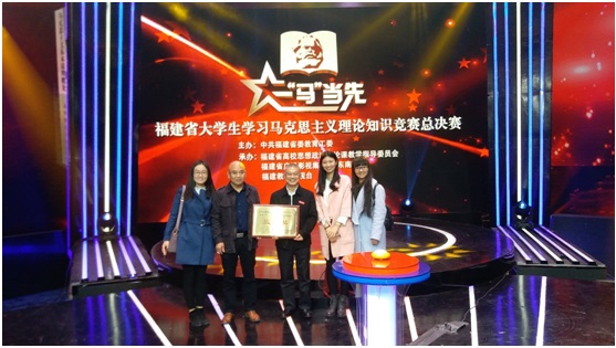 日前,由福建省委教育工委主办的首季福建省高校大学生学习马克思主义理论“一‘马’当先”知识竞赛落下帷幕。金年会代表队表现良好、成绩喜人,以103分的总成绩排名第六名,荣获团体三等奖。金年会jinnianhuicom筹建工作领导小组副组长、福建商专党委书记吴访益应邀参加颁奖仪式。
