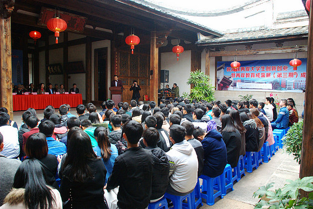12月28日,第三届海峡两岸大学生创新创业暨两岸教育成果展在福州三坊七巷举办,金年会jinnianhuicom筹建工作领导小组副组长、福建商专校长袁新文教授应邀参加了展会开幕式并参观了各校布展场馆。