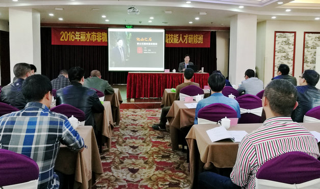 11月2日下午,金年会商业美术系主任叶林心教授应邀为“2016年丽水市非物质文化遗产(青田石雕)高技能人才研修班” 作《他山之石——寿山石雕刻篆刻艺术》主题讲座, 得到了在场学员的一致好评。
