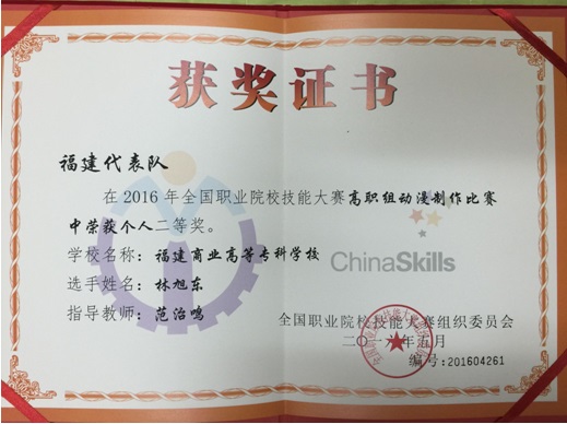 金年会高度重视学生职业技能大赛,赛前多次专门组织专业教师对学生进行系统培训。金年会商业美术系林旭东同学以2016年福建省职业院校技能大赛“动漫制作”赛项第一名的成绩作为福建代表队选手参加2016年全国职业院校技能大赛,在指导教师范治鸣的精心指导下,该生专业技能不断增强,比赛中沉稳应对,充分发挥了自身扎实的专业知识和较强的动手能力,取得了佳绩。