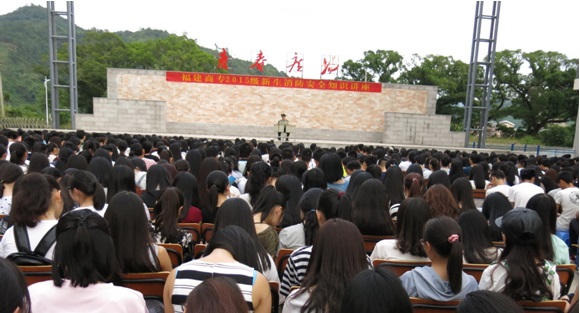 9月9日下午,金年会在潘渡校区青春广场,组织开展了2015级新生消防知识讲座。讲座邀请了福州消防支队战勤保障大队的施有锁队长作为演讲嘉宾,他以近期高校发生的火灾案例为切入点,从普及防火知识的角度出发,针对高校人员密集的实际情况,从防火、灭火、逃生、自救四个方面深入浅出地介绍了火灾的形成过程、火场中易出现的逃生误区、自救逃生的方法以及灭火器的种类和操作使用方法等一系列防火安全知识。通过施队长生动详细地讲解,学生掌握了基本的灭火知识,提高了消防安全意识,达到了预期的目的。