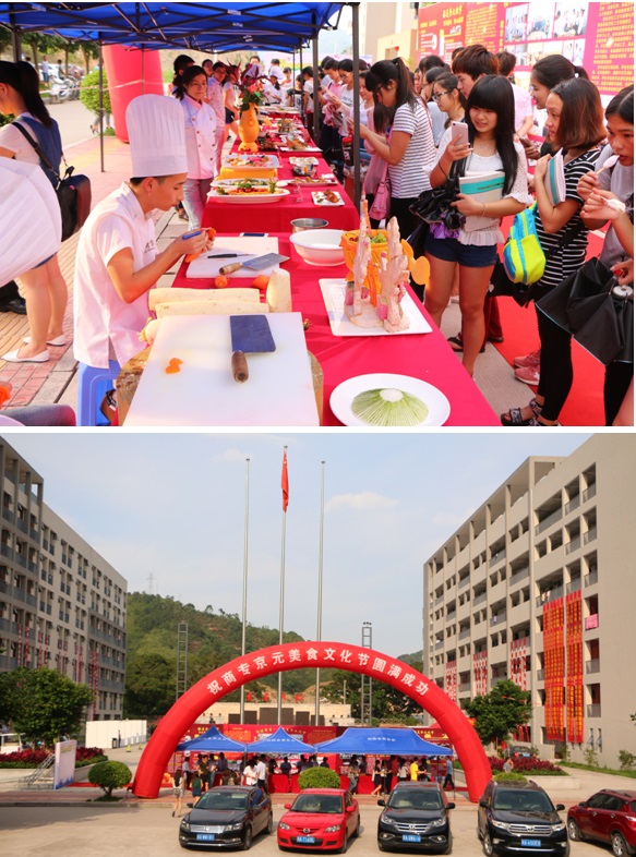 本届美食文化节规模盛大,内容丰富,主要涵盖合作企业及烹饪专业文化展、美食展示品尝、文艺晚会三个环节。文化展现场,合作企业京元餐饮管理有限公司展示了其企业发展历程、企业经营理念以及企业经营成果,烹饪专业则展示了自设立以来教学活动、企业实践活动以及作品成果。美食展示品尝环节展示了烹饪工艺与营养专业2015届学生毕业作品成果,京元餐饮、中快餐饮的师傅们和烹饪专业学生现场美食制作,热菜、面食、糕点等一应俱全。品尝完美食之后,大家又观看了精彩纷呈的文化节文艺晚会,晚会现场,京元餐饮管理有限公司的食品安全监督专家上台宣讲了食品安全知识。