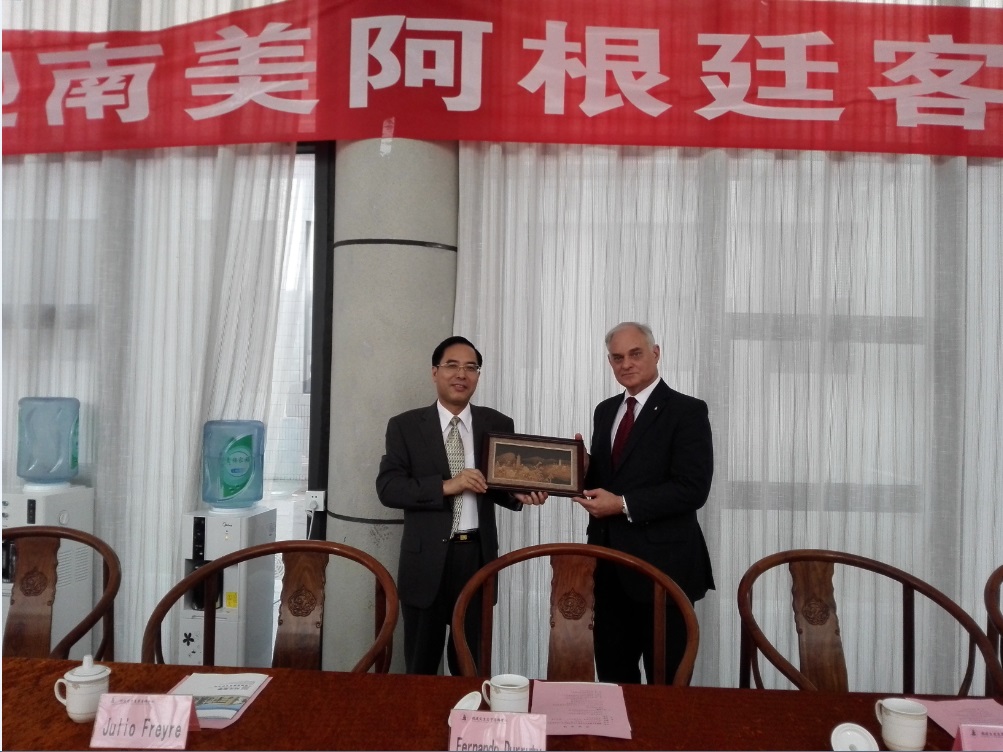 当日中午,阿根廷共和国驻广州总领事馆首次在福州西湖宾馆举办阿根廷国庆招待会,袁新文校长及吴贵明、黄跃舟、胡新平等校领导应邀出席了招待会。
