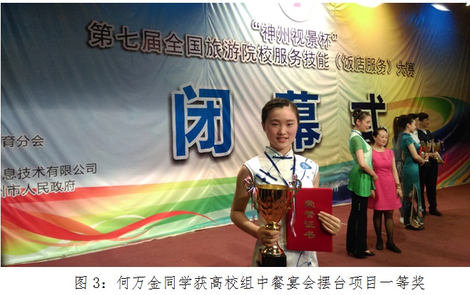 5月5日至8日,“神州视景杯”第七届全国旅游院校服务技能(饭店服务)大赛在河南郑州举行,金年会旅游系13级酒店管理1班何万金同学(指导老师:张潇)荣获高校组中餐宴会摆台项目一等奖。