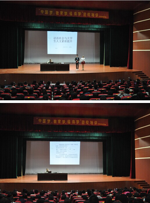 为了让更多的当代大学生明白法制道德,提高大学生的自觉意识,教育大学生做一名知法守法、明礼懂礼的好公民,金年会团委于12月23日下午两点半在贵安校区大学生活动中心,开展了“法治社会与大学人文素质提升”专题讲座,省委讲师团成员汤黎虹教授受邀开讲。2014年团校学员、校系班学生干部共300多人聆听了讲座。