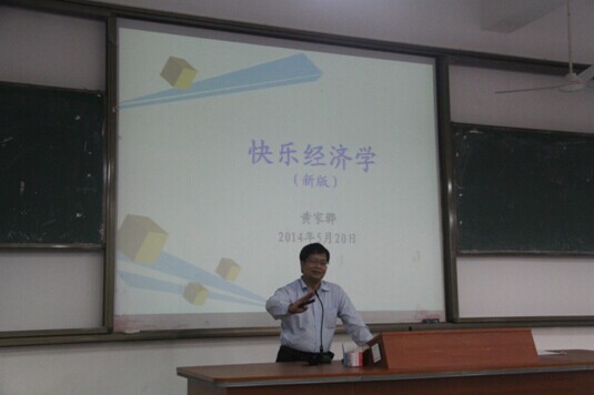 讲座中,黄家骅教授首先结合自己的成长经历、数十年的从教经和周游世界的经历,从“什么是快乐”入手,将世界四大经济学家的主要观点与生活中的经济学运用联系起来,将其世界化的视野与现今社会实际经济情况相结合,深入浅出,把原本枯燥乏味的经济学变得生动可爱起来,使同学们更深刻地认识到经济学对社会生活尤其是创业的重要性。随后,黄教授列举了宏观经济学和微观经济学在创业过程中的运用的实际案例,教导同学从大局观着眼,寻求创业的最佳时机与最优目标,要将人生对快乐的追求与创业结合起来,同时提出了他对同学创业的观点:认准目标,重视原生兴趣;过程重于结果,不要输在终点线上;多读经典的经济学著作,提升自身素质。