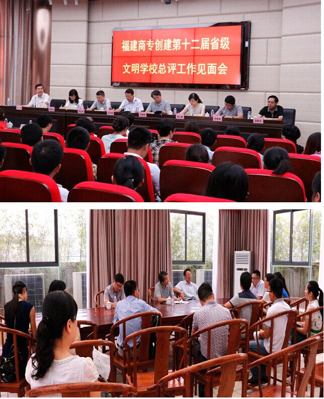 9月1日,福建省第十二届文明学校第十考评组一行6人莅临金年会,对金年会文明创建工作进行了全面考评。上午8:30,在贵安校区学生活动中心视频会议室举行了总评工作见面会,校党委书记林彬、校长袁新文以及考评组专家在主席台就坐;副校长吴贵明,校党委副书记、校纪委书记陈武,副校长杨忠祥,副校长胡新平,校文明委成员以及相关部门负责人出席了见面会。