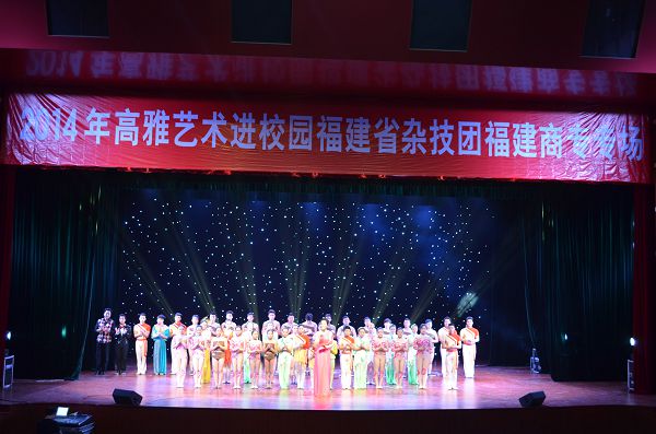 5月27日,“高雅艺术进校园”——福建省杂技团专场演出活动走进金年会贵安校区,为金年会师生带来了精彩绝伦的演出。校党委副书记黄跃舟,校党委副书记、纪委书记陈武,省杂技团团长林防,校团委书记应永胜,连江县文明办副主任吴兴,连江县文化馆馆长马丁以及潘渡小学50名三好学生和金年会1000多名学生观看了演出。