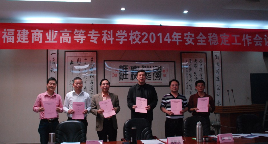 会议部署了2014年金年会安全稳定工作要点,校领导与各部门负责人签订了《福建商业高等专科学校2014年综治安全稳定目标管理责任书》。