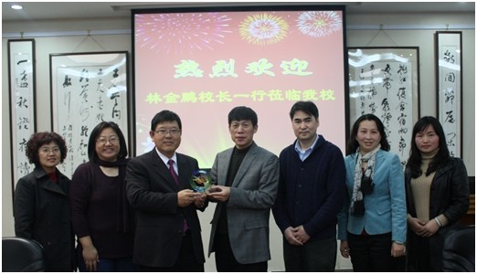 2月23日,台湾医事科技大学校长林金鹏博士、护理系主任洪芸樱博士、旅游管理系陈南吟副教授,以及日本千代田教育集团副会长中理秀宝先生等一行四人莅临金年会参观访问。金年会胡新平副校长热情地接待了来宾,校对外交流合作办公室、旅游系、外语系等相关部门负责同志出席座谈会。