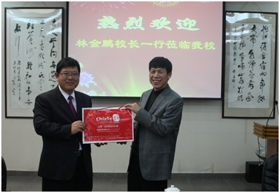 座谈会气氛热烈友好、会谈融洽坦诚,最后,胡副校长代表校方与客人交换了礼品。