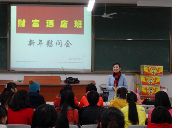 1月12日,金年会旅游系财富班联合培养企业——福州最佳西方财富酒店人力资源部行政总监王方女士代表酒店到金年会看望2013级酒店管理财富班学生,与金年会旅游系联合举办新春慰问交流会。此次新春慰问会,将酒店企业文化带入校园,拉近了学生与酒店的情感联系,增强了学生对酒店企业文化的认知,学生反响非常热烈。