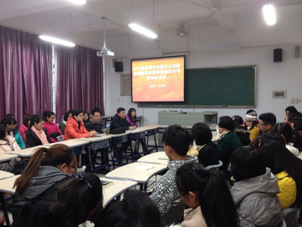 会上,大家观看了本次活动的图片集锦与录像。师生们畅谈感想、感受及体会,气氛十分热烈。最后,旅游系主任王瑜教授做了总结性发言,肯定了此次活动与总结会的圆满成功并对今后的工作开展提出希望。